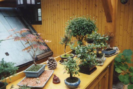 Der Ahorn sowie einige Ulmen und die große Serissa im Hintergrund. Leider ist mir die Serissa (Junischnee) eingegangen ;-(