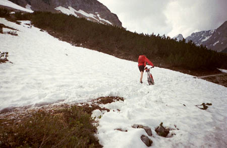 Teilweise mußten richtige Schneefelder durchquert werden. Zu diesem Zeitpunkt waren wir schon ganz schön fertig... :-)