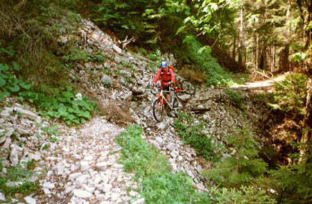 Einige Abwärtspassagen konnten in richtiger Mountain-Bike-Manier genommen werden. Nur wenn dann plötzlich der Weg verschwunden war, mußste man doch mal absteigen und das Rad schieben, um nicht mit dem Geröll den Hang hinabzurutschen.